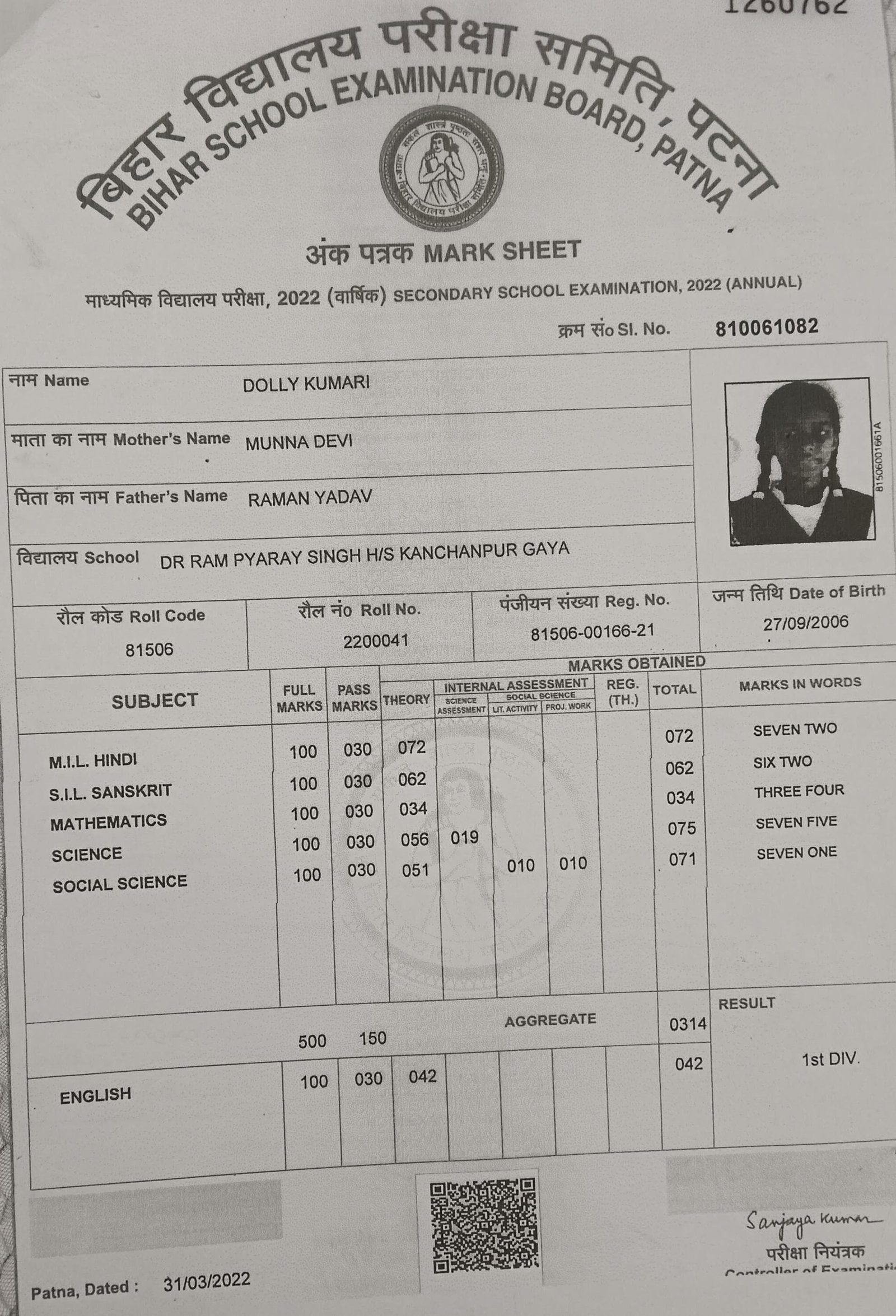 | Exam | Full Marks | Pass Marks | Marks Obtained |