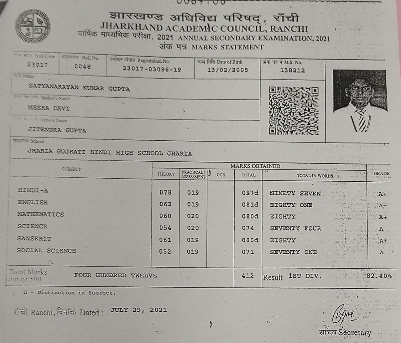| Exam | Full Marks | Pass Marks | Marks Obtained |