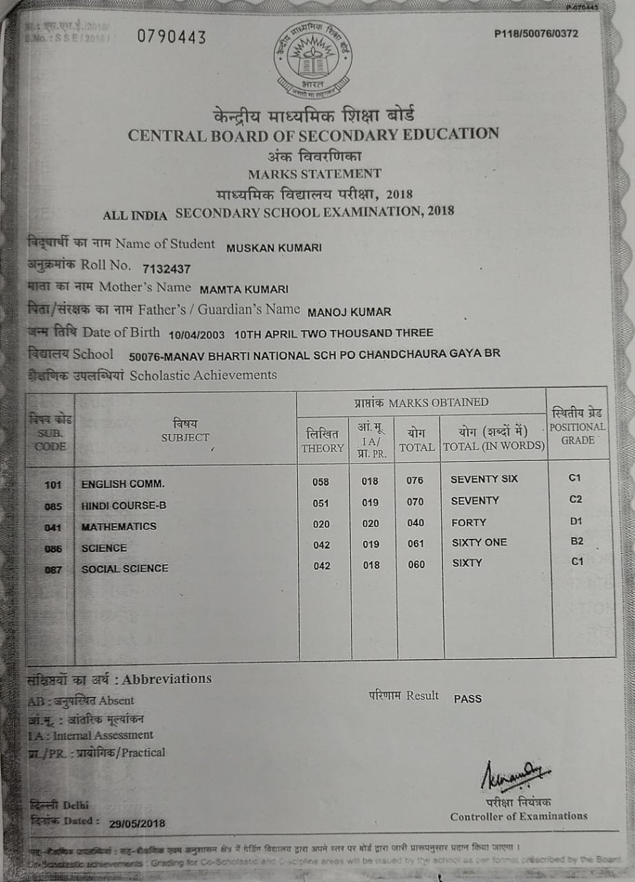 | Exam | Full Marks | Pass Marks | Marks Obtained |