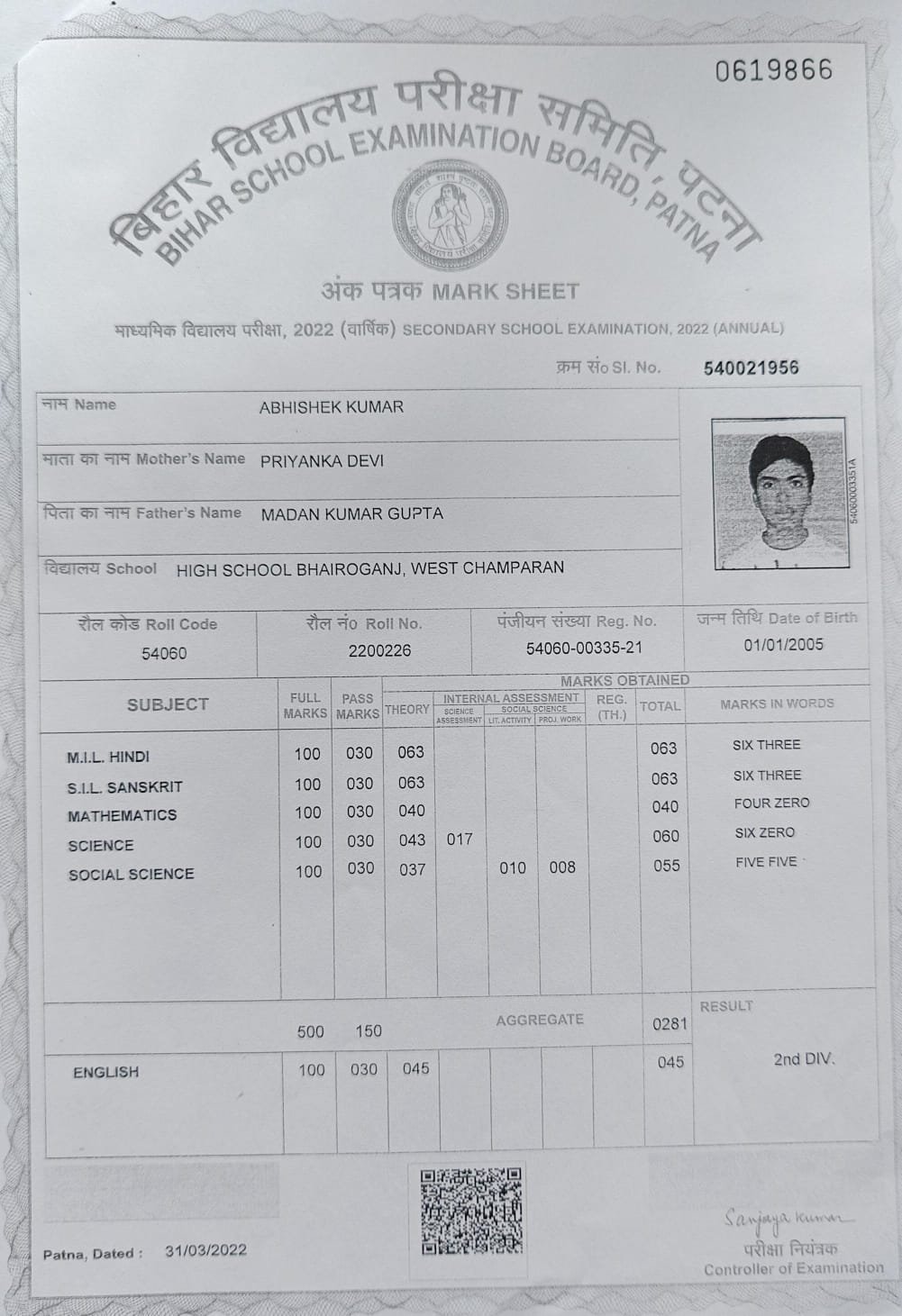 | Exam | Full Marks | Pass Marks | Marks Obtained |