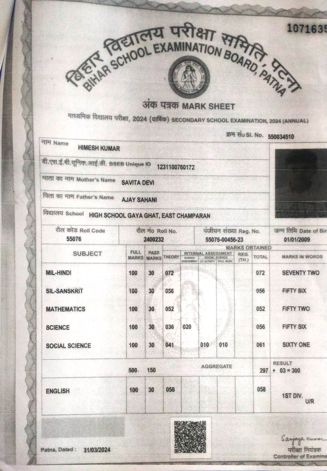 | Exam | Full Marks | Pass Marks | Marks Obtained |