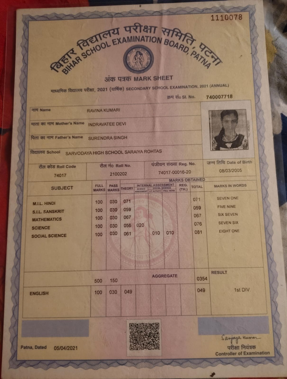 | Exam | Full Marks | Pass Marks | Marks Obtained |