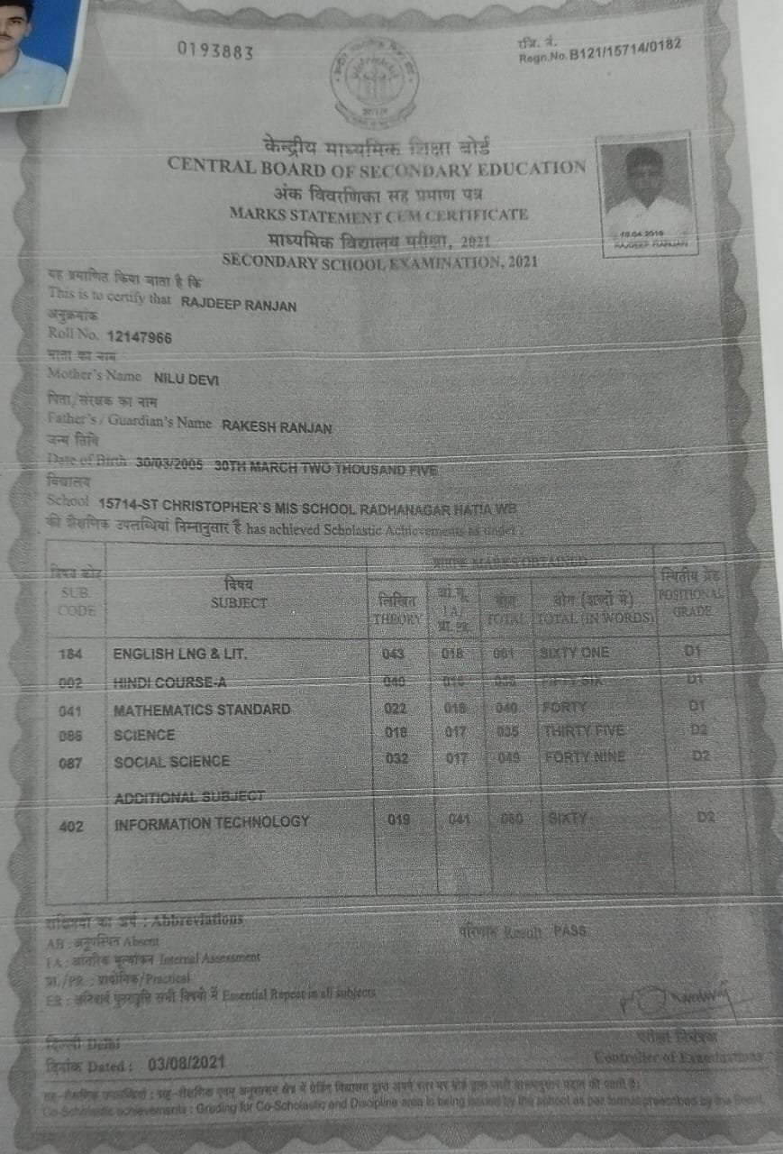 | Exam | Full Marks | Pass Marks | Marks Obtained |