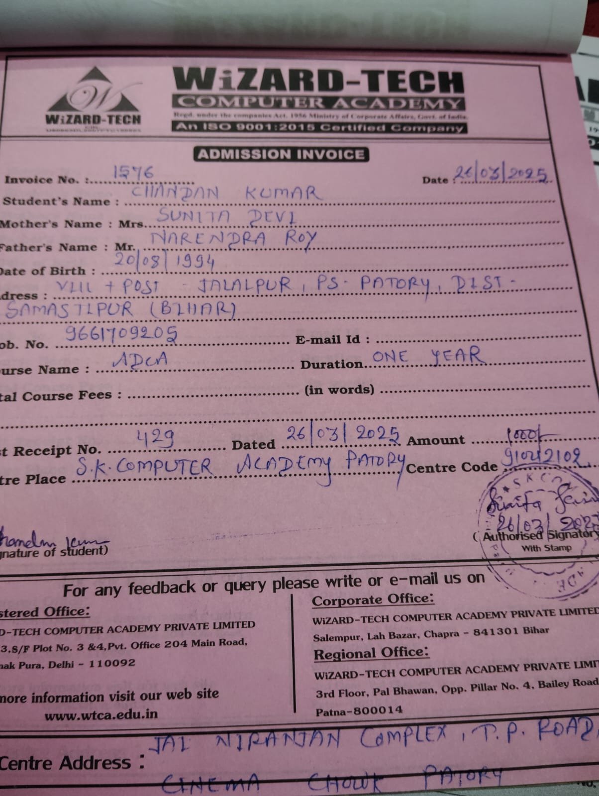 | : | Advance Diploma in Computer Application ( ADCA ) | |