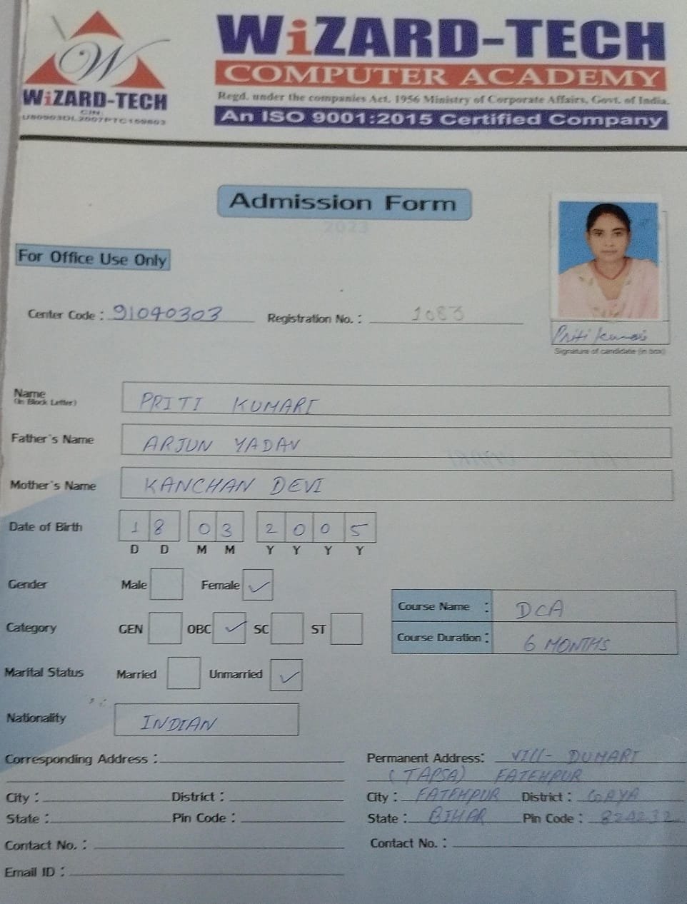 | : | Diploma in Computer Application ( DCA ) | |