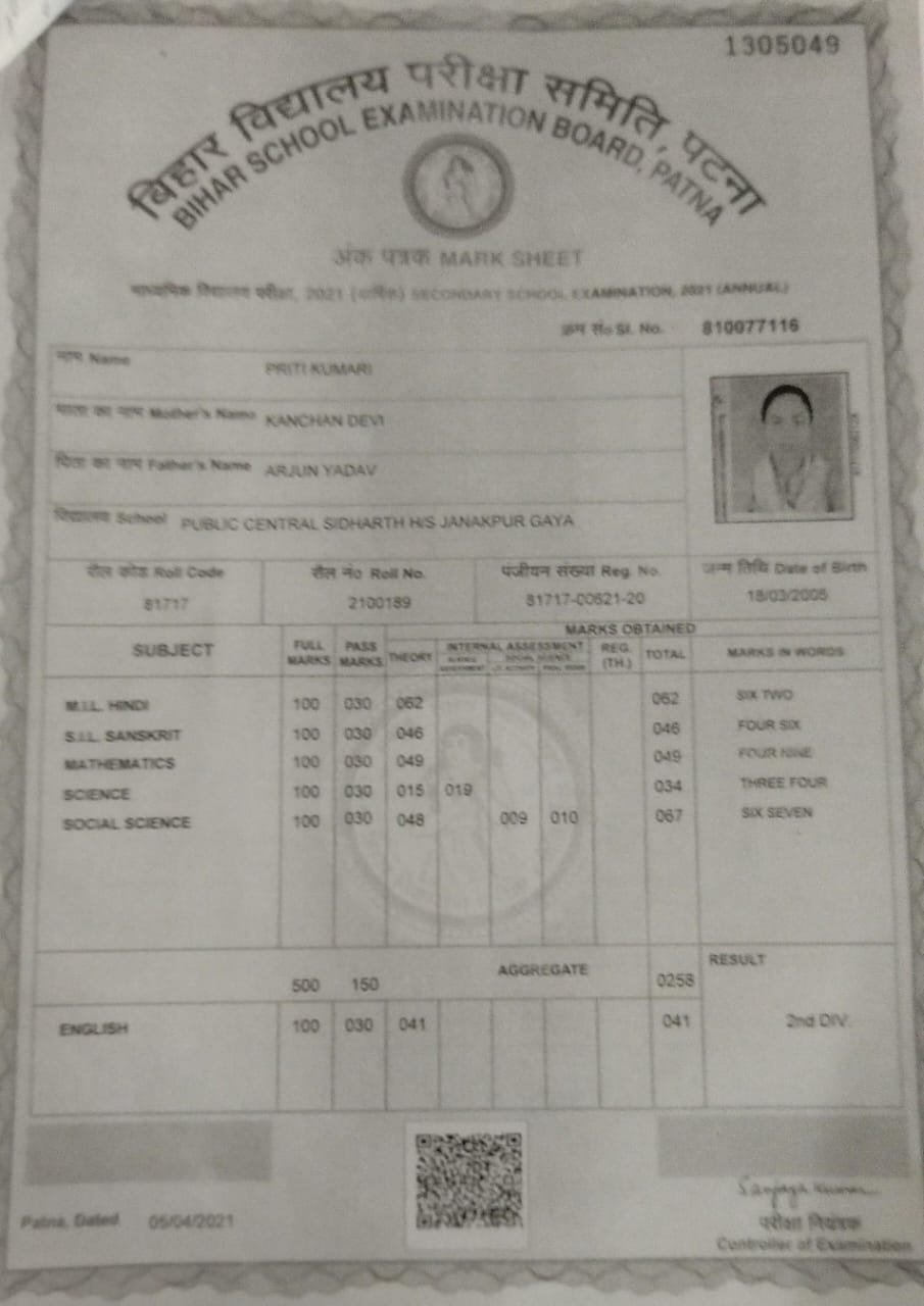| Exam | Full Marks | Pass Marks | Marks Obtained |