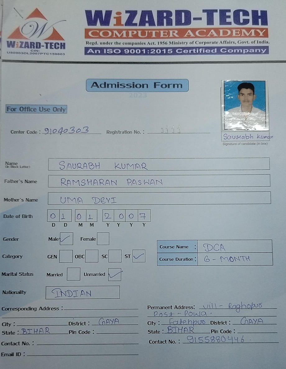 | : | Diploma in Computer Application ( DCA ) | |