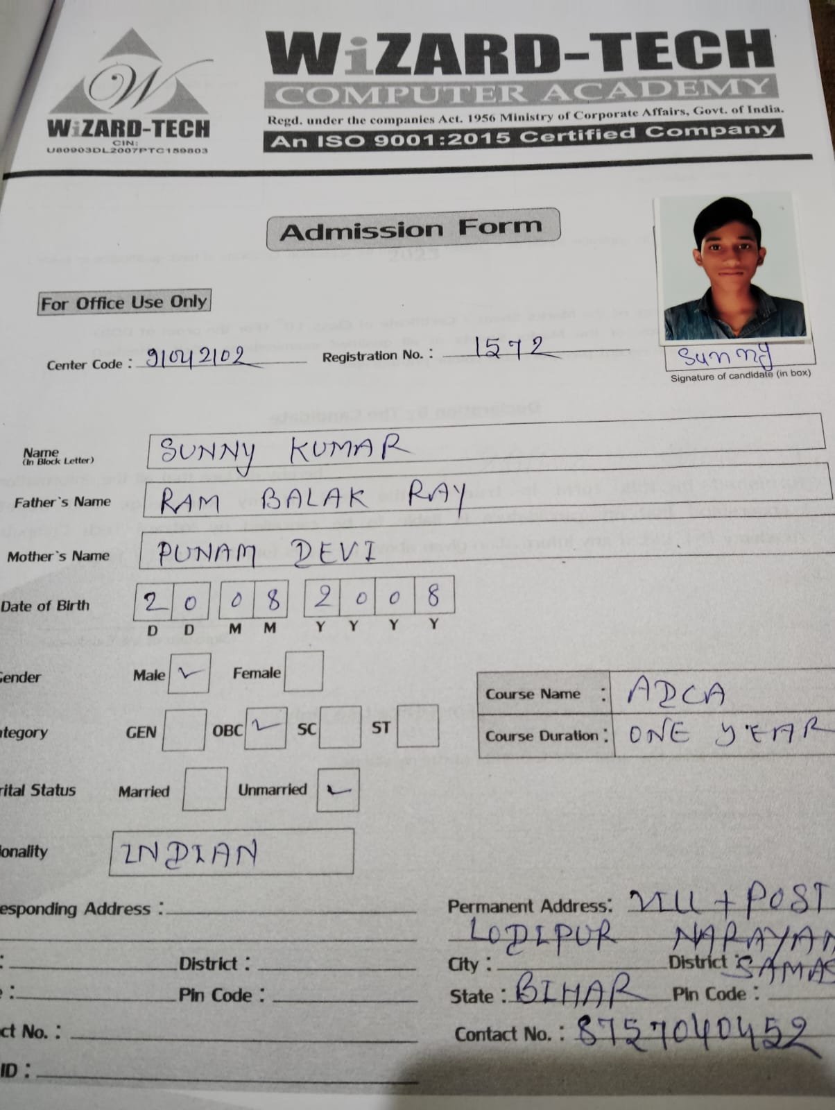 | : | Advance Diploma in Computer Application ( ADCA ) | |