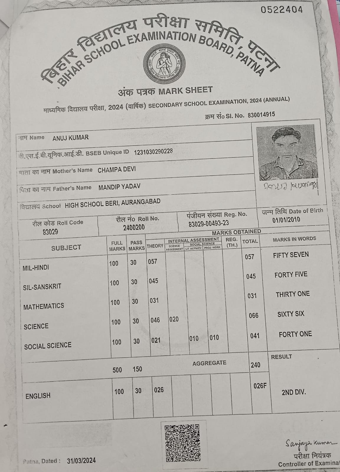 | Exam | Full Marks | Pass Marks | Marks Obtained |