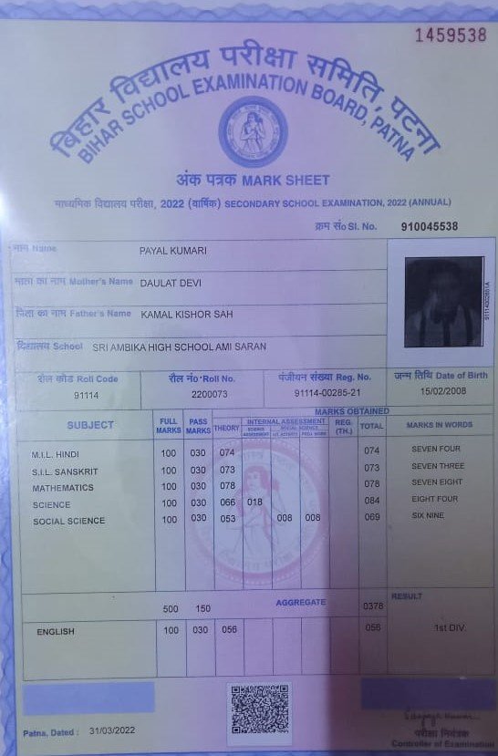 | Exam | Full Marks | Pass Marks | Marks Obtained |