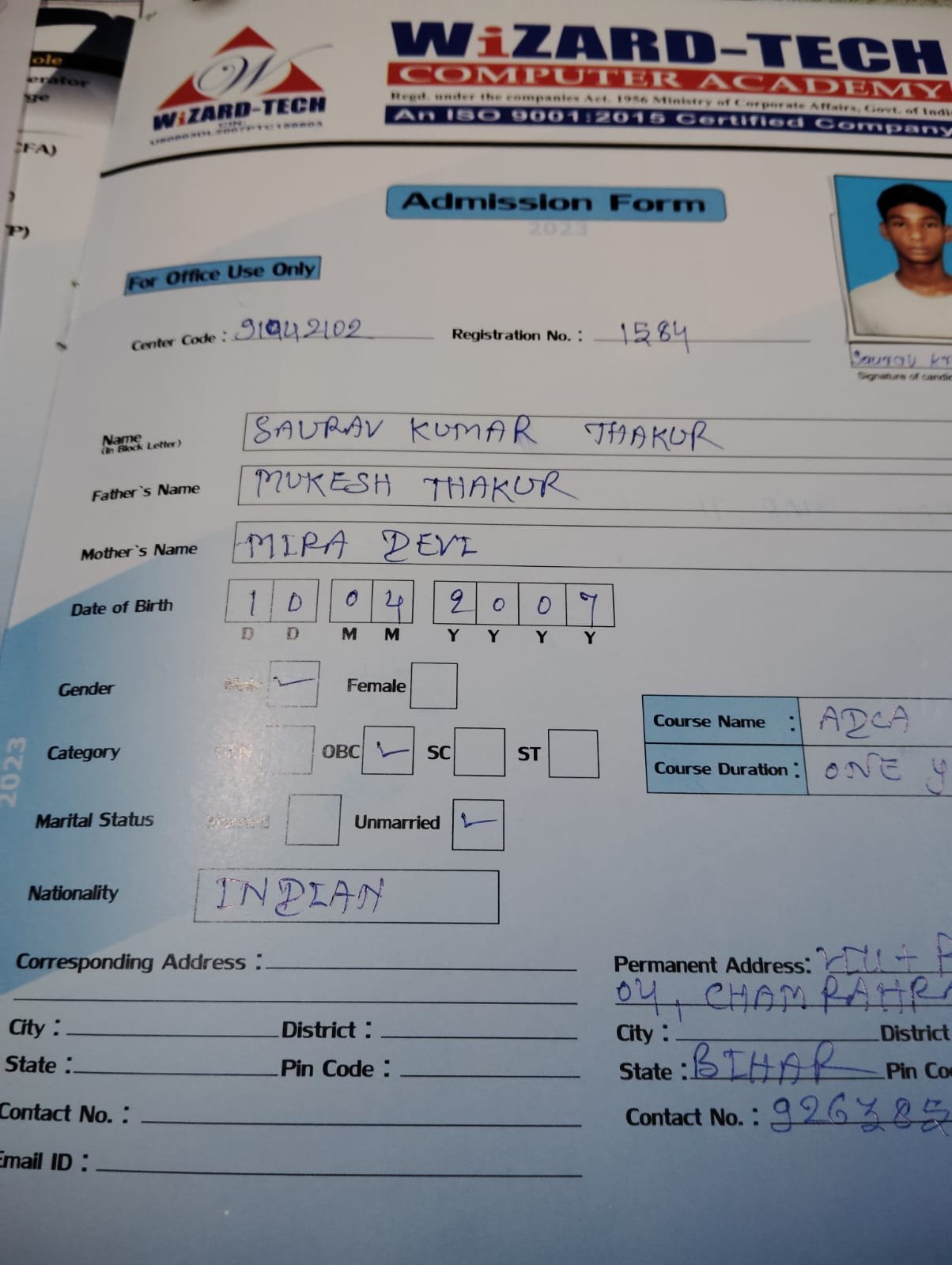 | : | Advance Diploma in Computer Application ( ADCA ) | |