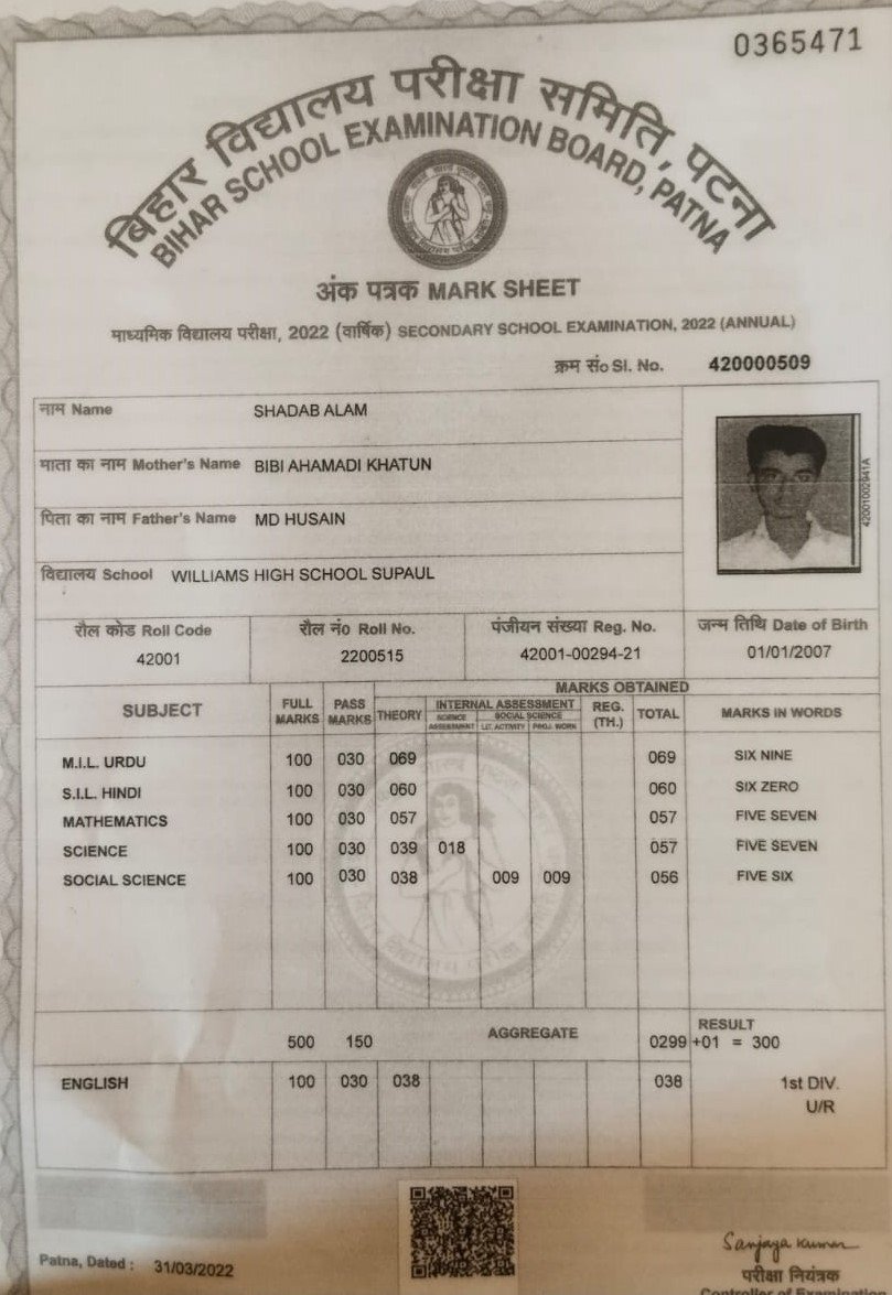 | Exam | Full Marks | Pass Marks | Marks Obtained |
