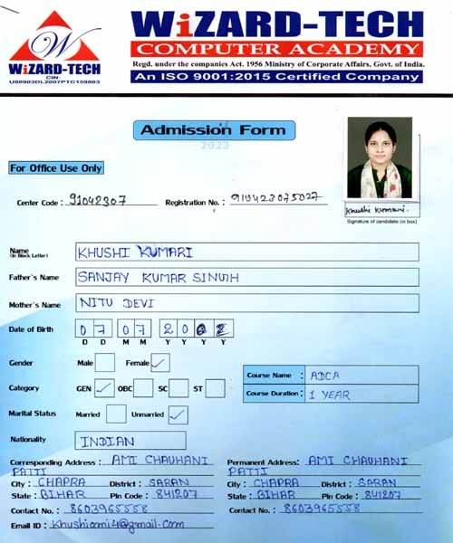 | : | Advance Diploma in Computer Application ( ADCA ) | |