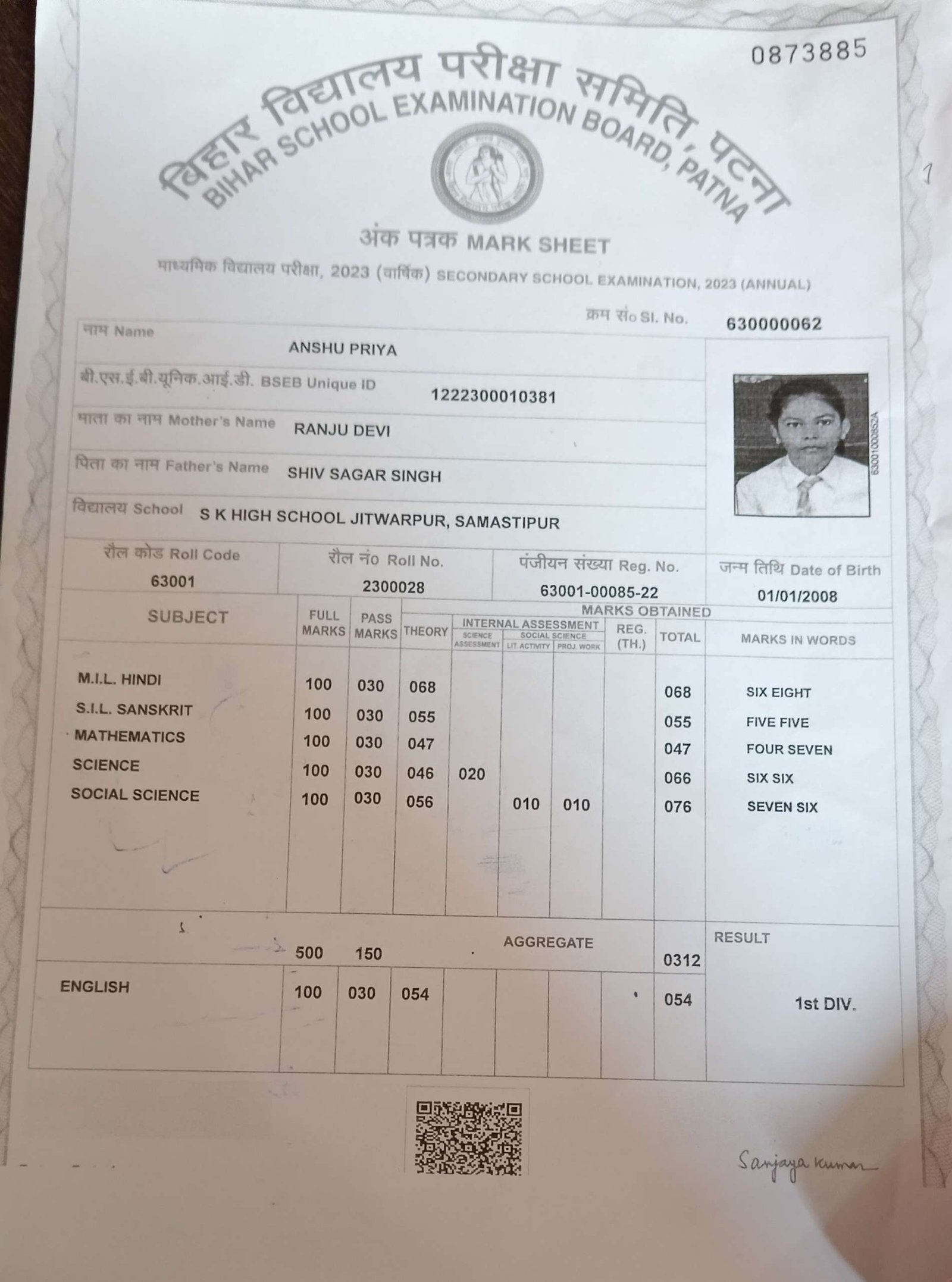 | Exam | Full Marks | Pass Marks | Marks Obtained |