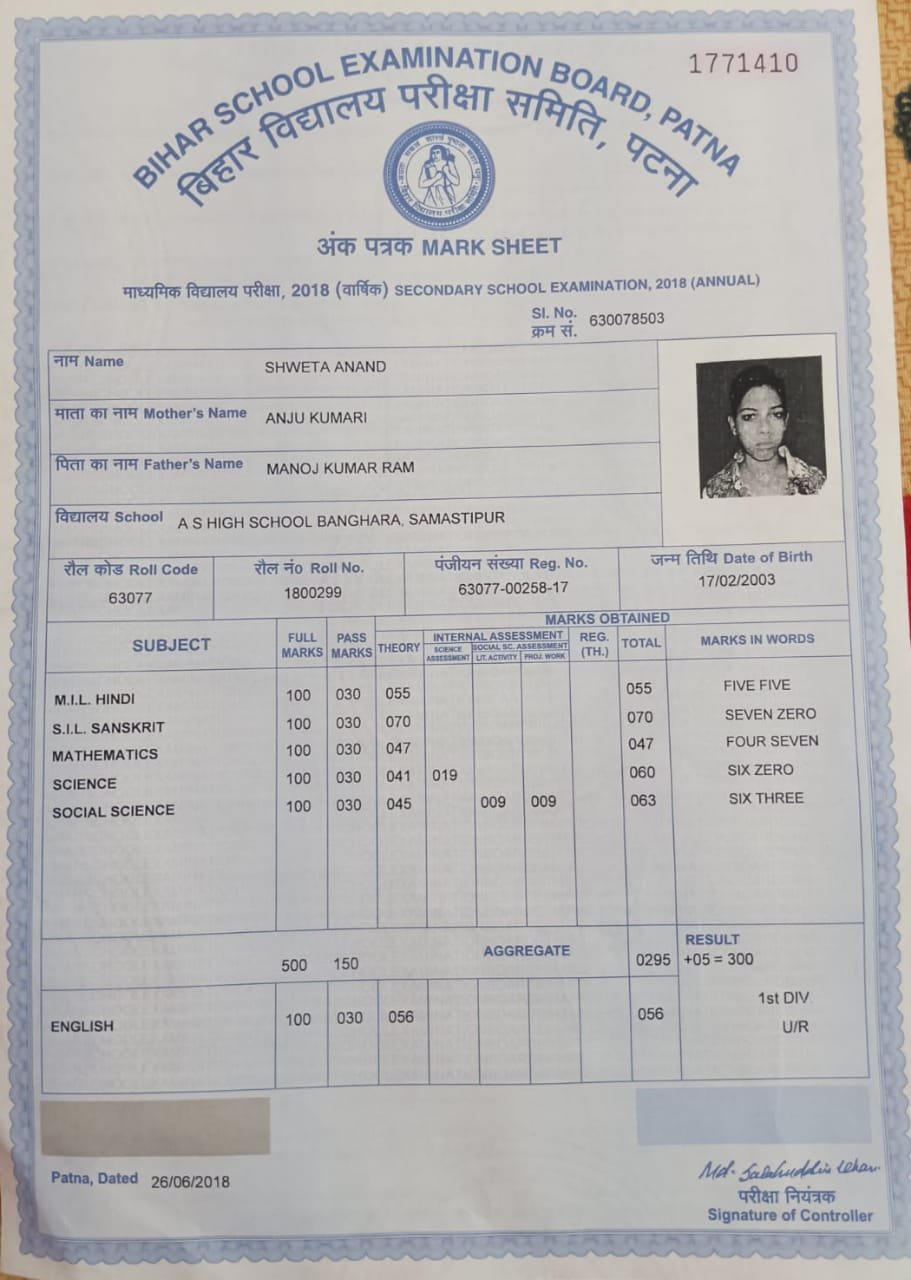 | Exam | Full Marks | Pass Marks | Marks Obtained |