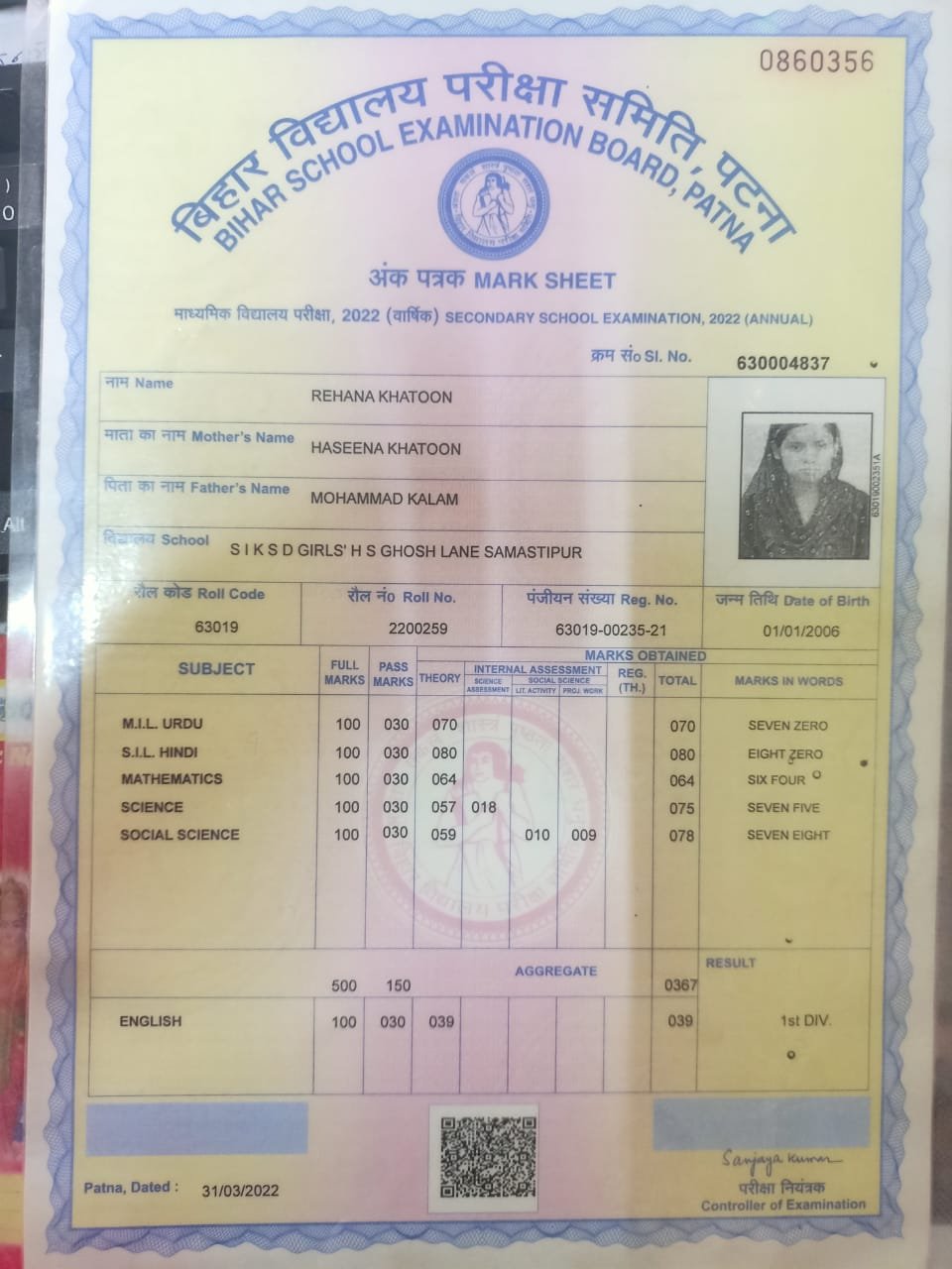 | Exam | Full Marks | Pass Marks | Marks Obtained |