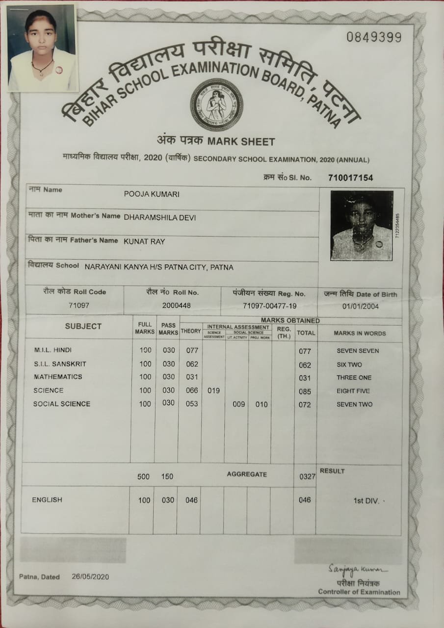 | Exam | Full Marks | Pass Marks | Marks Obtained |