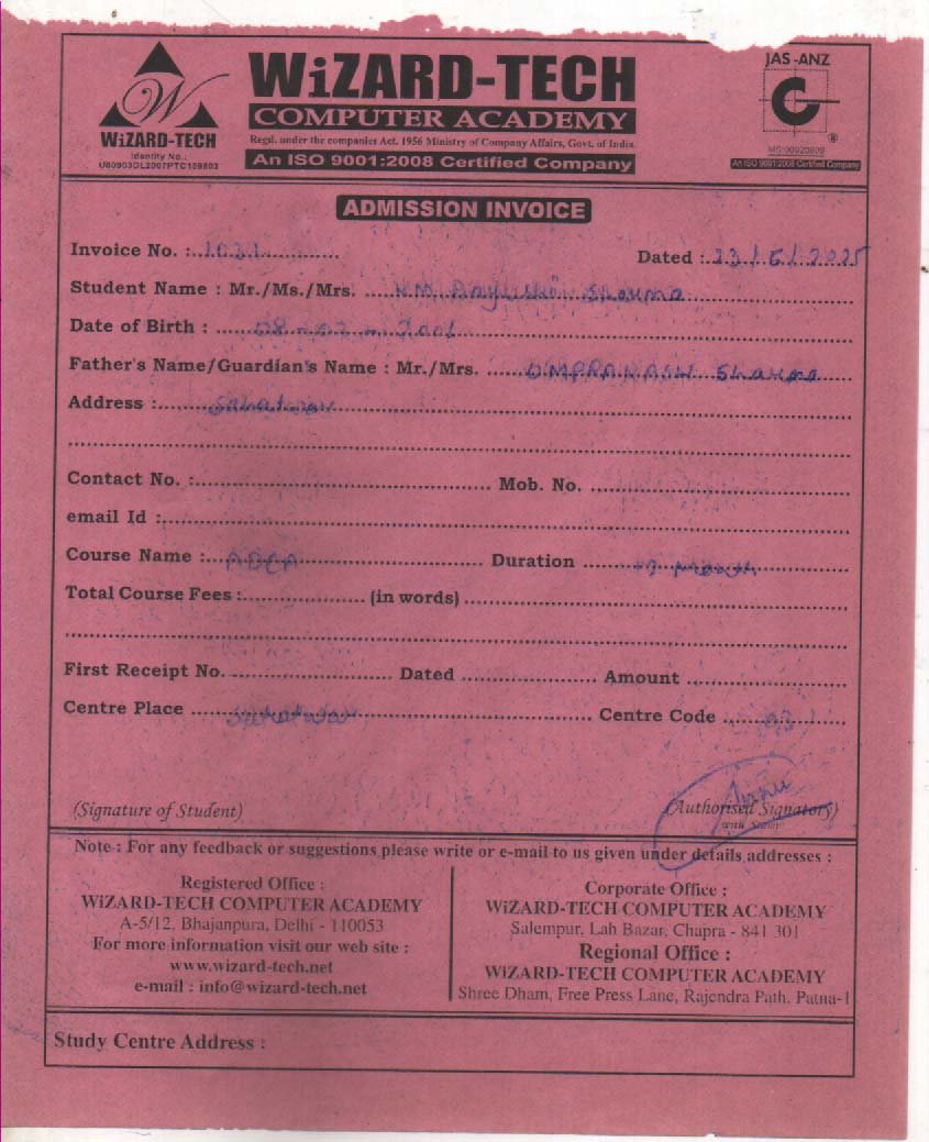 | : | Advance Diploma in Computer Application ( ADCA ) | |