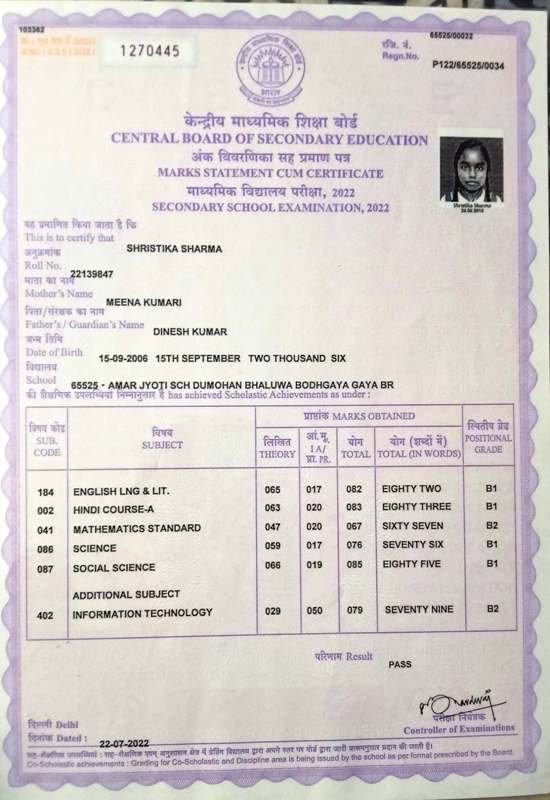 | Exam | Full Marks | Pass Marks | Marks Obtained |