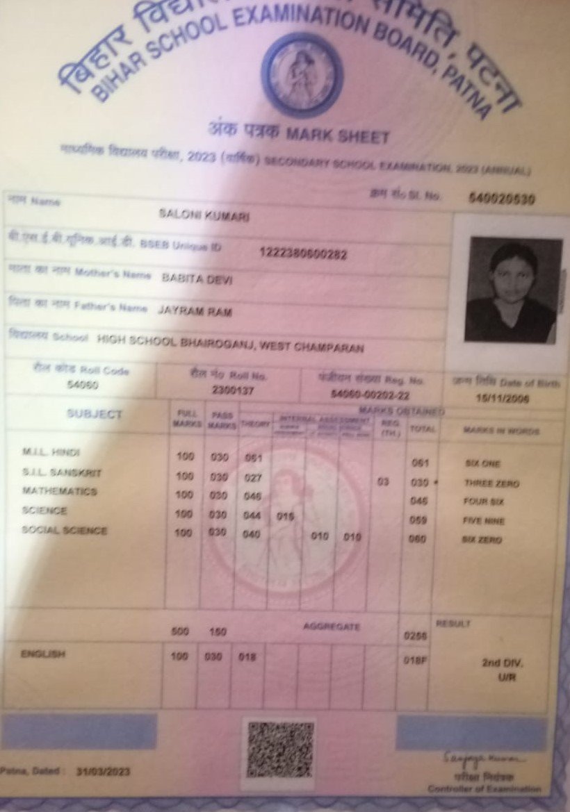 | Exam | Full Marks | Pass Marks | Marks Obtained |