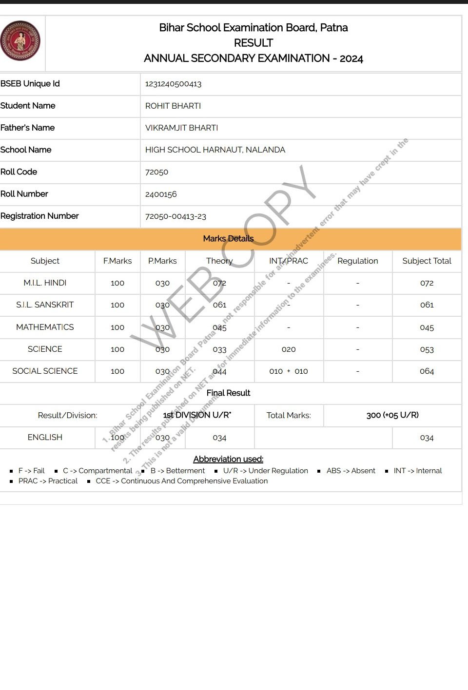 | Exam | Full Marks | Pass Marks | Marks Obtained |