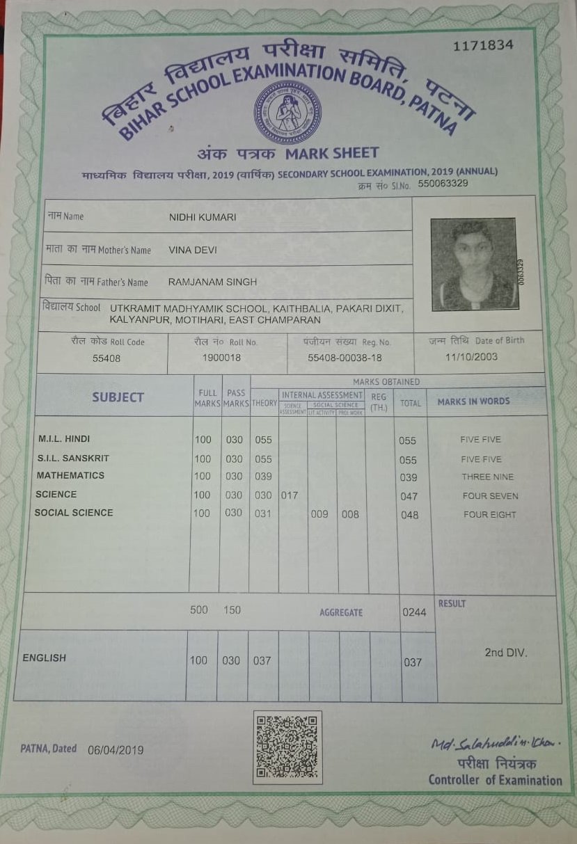 | Exam | Full Marks | Pass Marks | Marks Obtained |