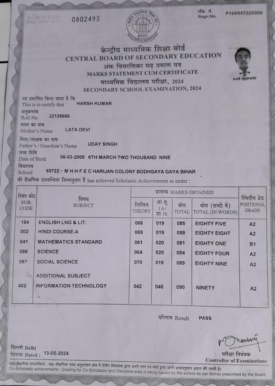 | Exam | Full Marks | Pass Marks | Marks Obtained |