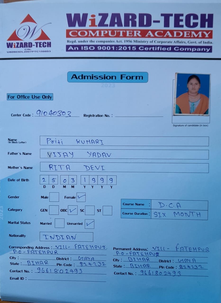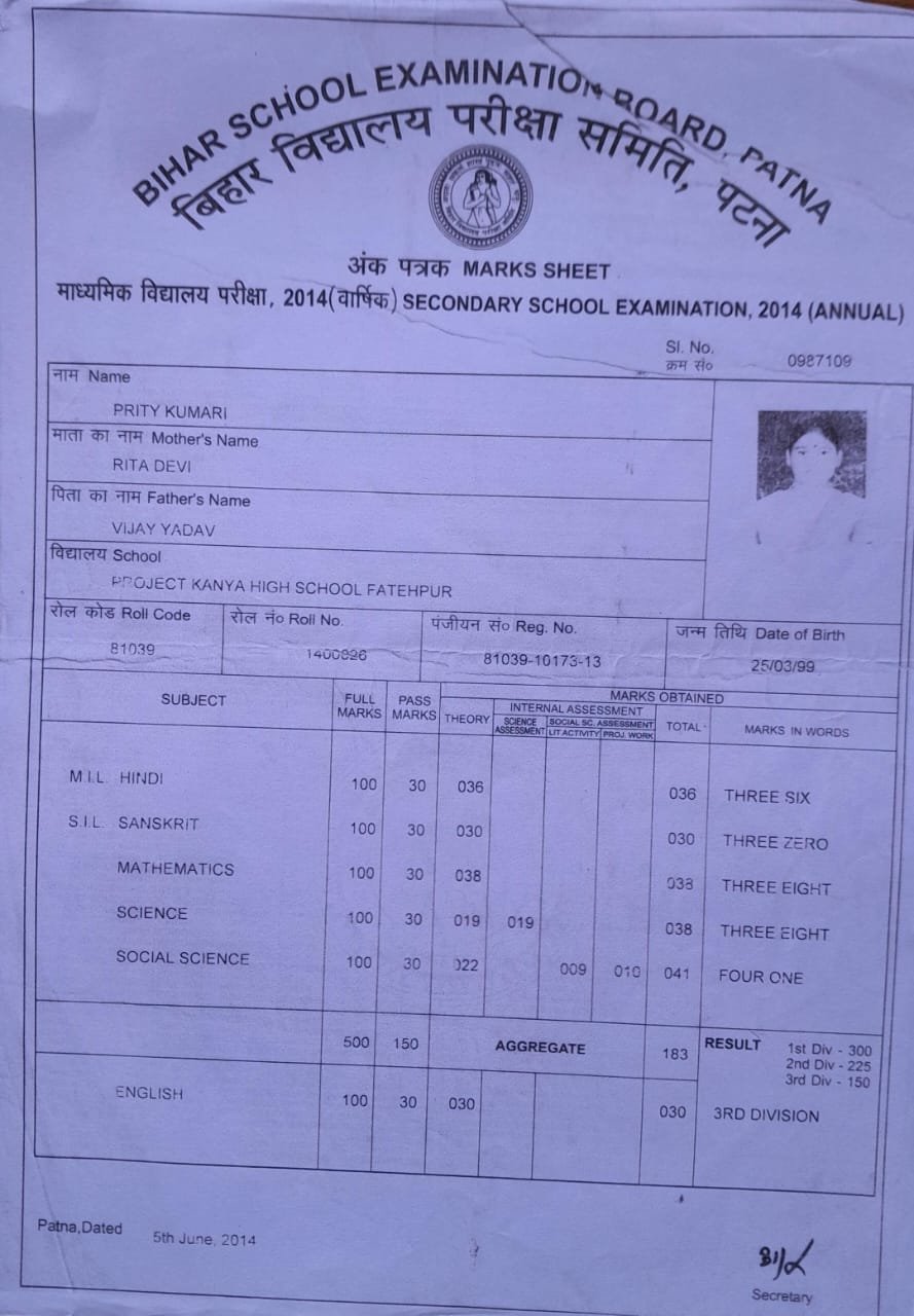 | Exam | Full Marks | Pass Marks | Marks Obtained |