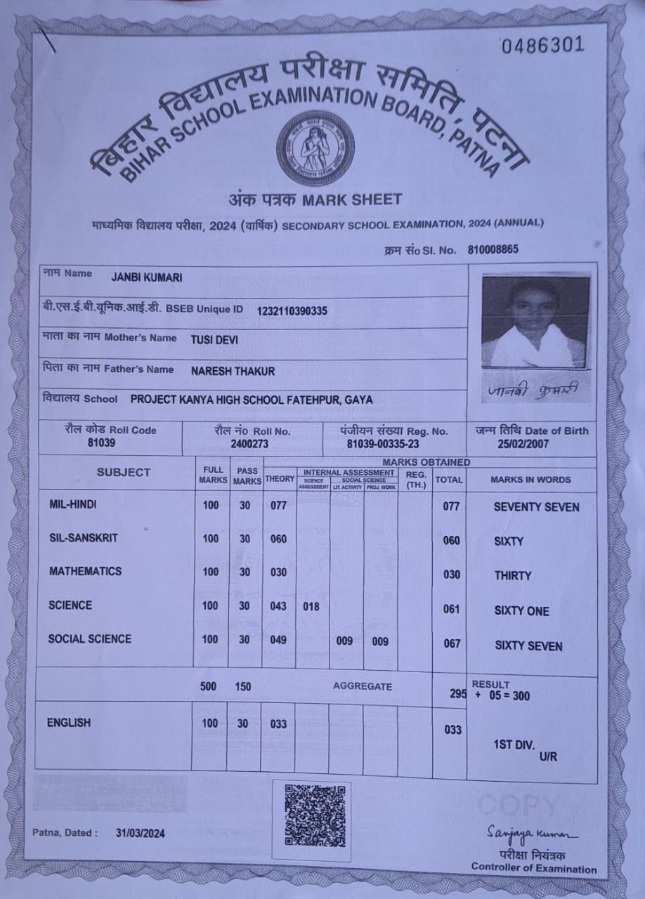 | Exam | Full Marks | Pass Marks | Marks Obtained |