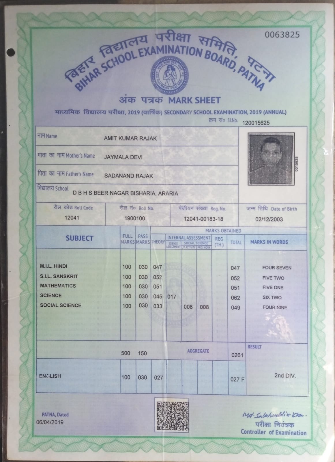 | Exam | Full Marks | Pass Marks | Marks Obtained |