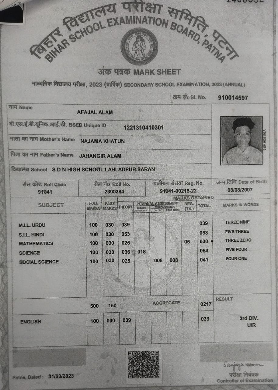 | Exam | Full Marks | Pass Marks | Marks Obtained |