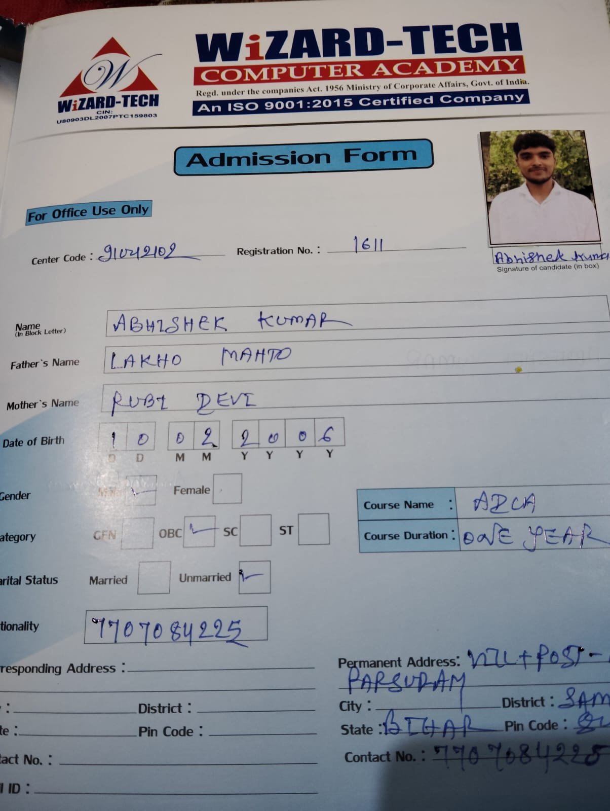 | : | Advance Diploma in Computer Application ( ADCA ) | |