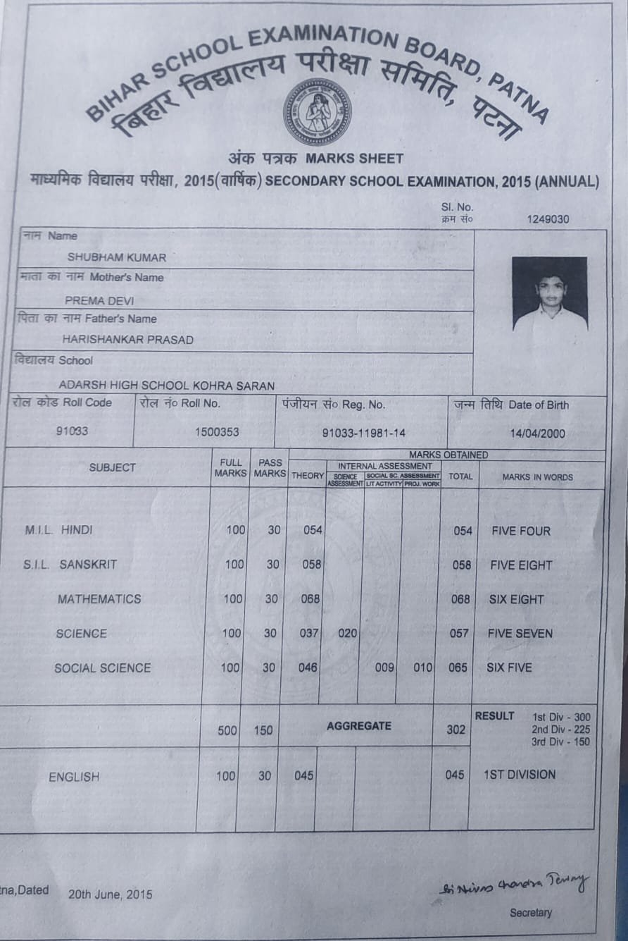 | Exam | Full Marks | Pass Marks | Marks Obtained |