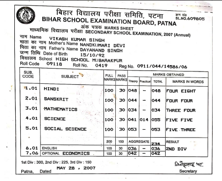 | Exam | Full Marks | Pass Marks | Marks Obtained |