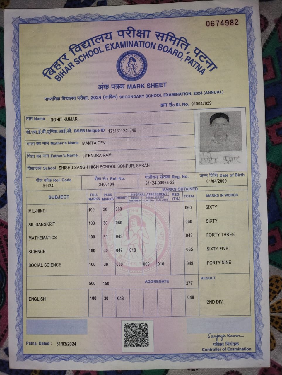 | Exam | Full Marks | Pass Marks | Marks Obtained |