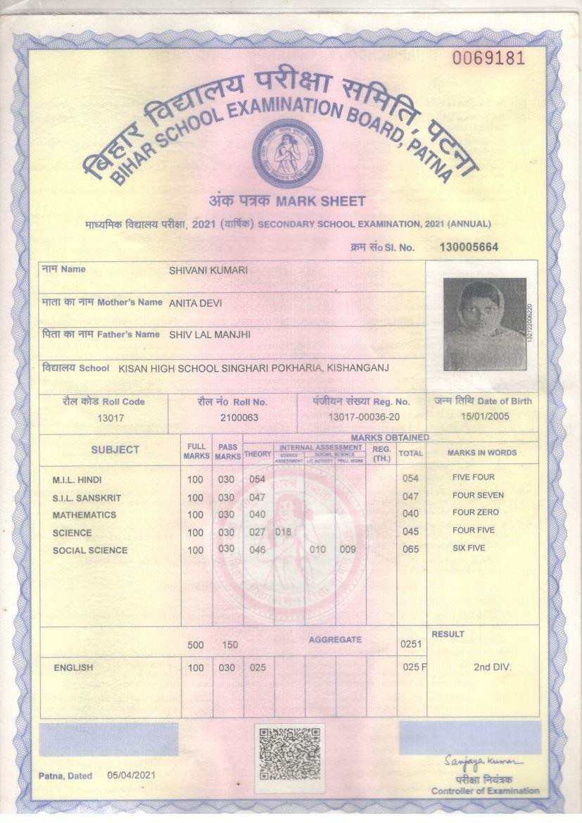 | Exam | Full Marks | Pass Marks | Marks Obtained |