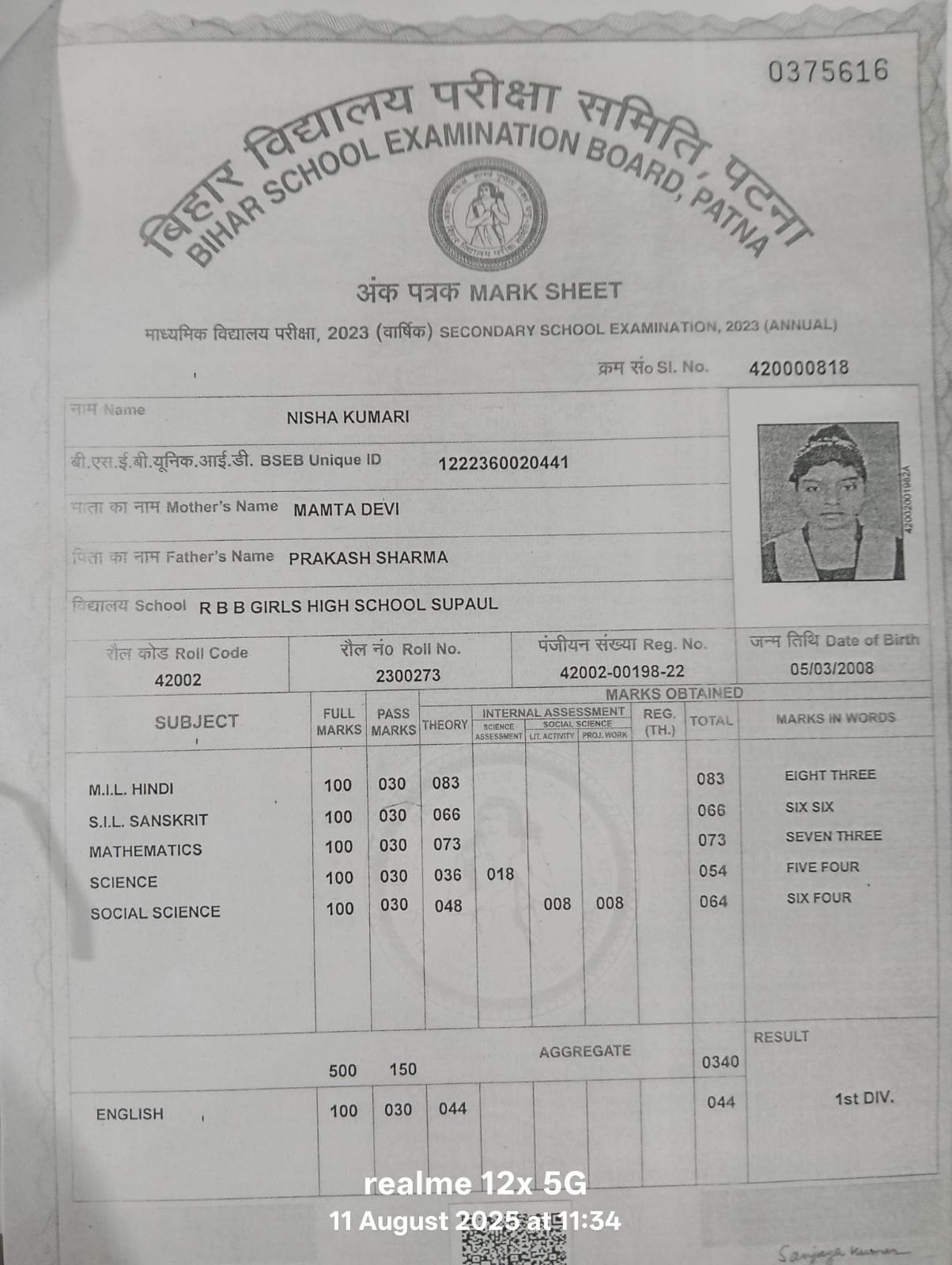 | Exam | Full Marks | Pass Marks | Marks Obtained |