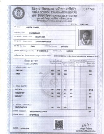 | Exam | Full Marks | Pass Marks | Marks Obtained |