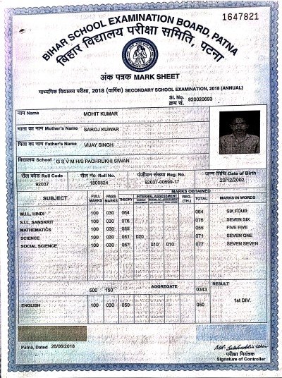 | Exam | Full Marks | Pass Marks | Marks Obtained |