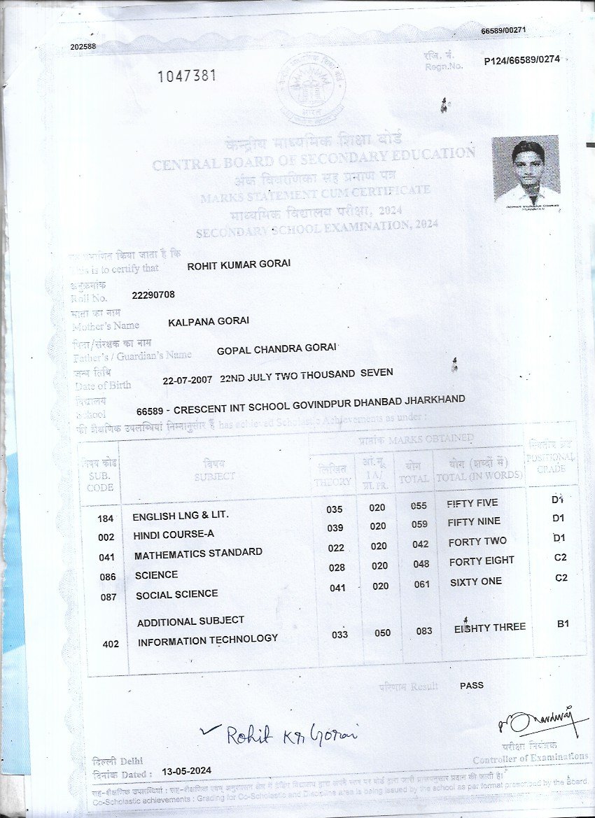 | Exam | Full Marks | Pass Marks | Marks Obtained |