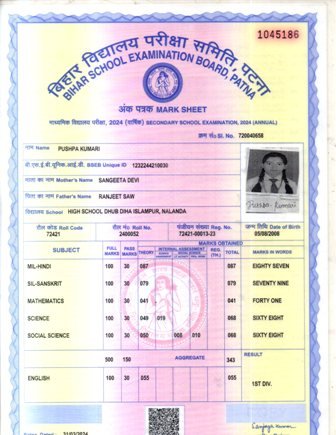 | Exam | Full Marks | Pass Marks | Marks Obtained |
