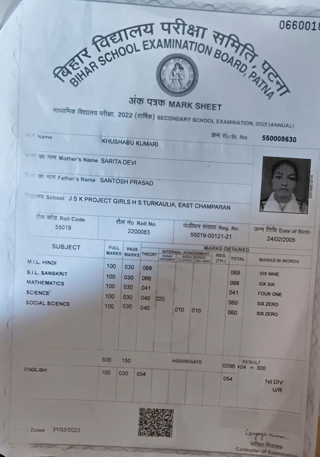 | Exam | Full Marks | Pass Marks | Marks Obtained |