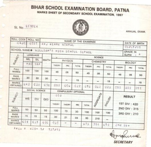 | Exam | Full Marks | Pass Marks | Marks Obtained |