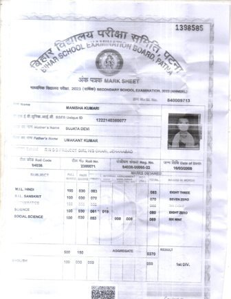 | Exam | Full Marks | Pass Marks | Marks Obtained |