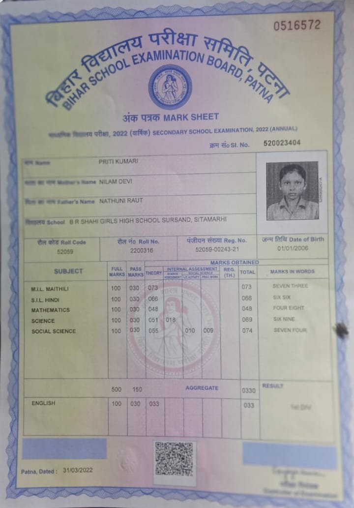 | Exam | Full Marks | Pass Marks | Marks Obtained |