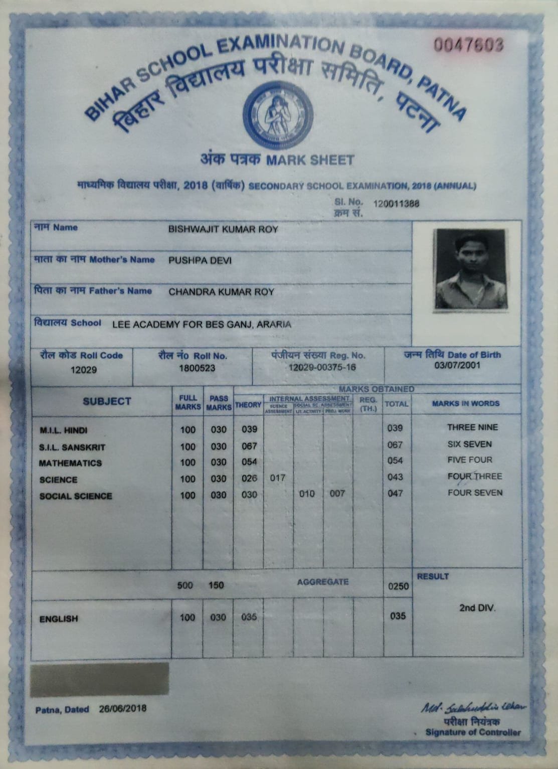 | : | Chandra Kumar Roy | |