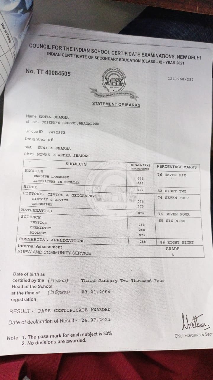 | Exam | Full Marks | Pass Marks | Marks Obtained |