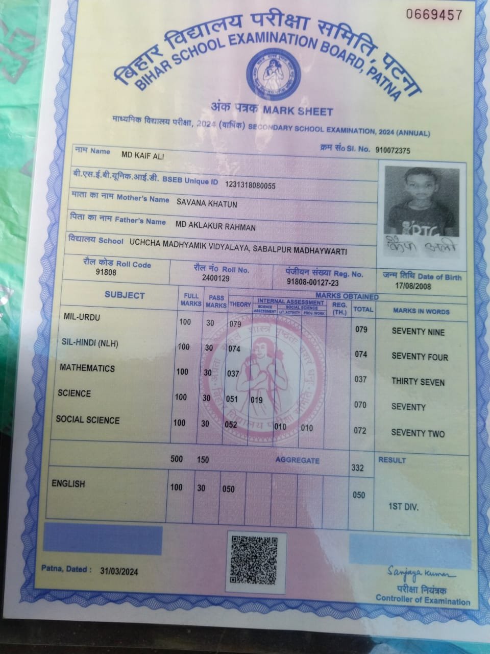 | Exam | Full Marks | Pass Marks | Marks Obtained |