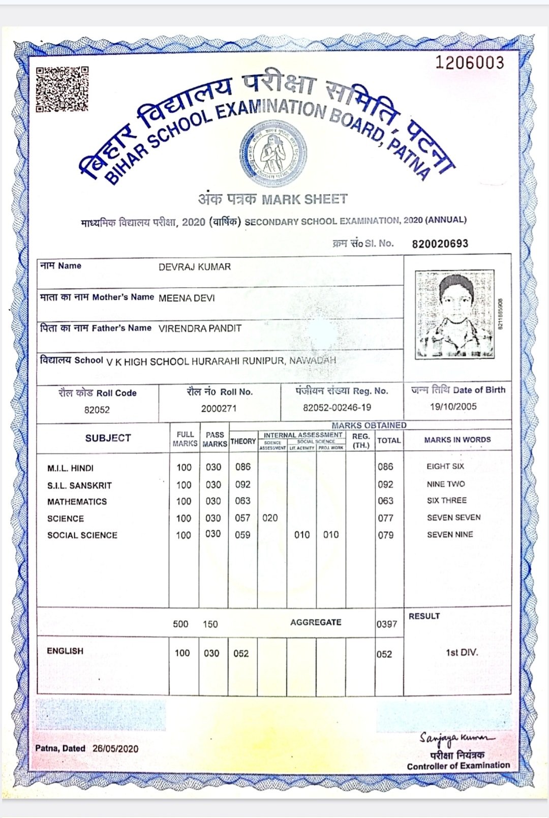 | Exam | Full Marks | Pass Marks | Marks Obtained |