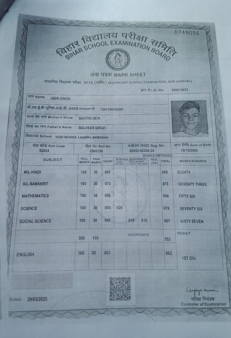 | Exam | Full Marks | Pass Marks | Marks Obtained |